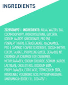 AQUA / WATER / EAU, COCAMIDOPROPYL HYDROXYSULTAINE, GLYCERIN, SODIUM LAUROYL SARCOSINATE, PEG-150 PENTAERYTHRITYL TETRASTEARATE, NIACINAMIDE, PEG-6 CAPRYLIC/CAPRIC GLYCERIDES, SODIUM METHYL COCOYL TAURATE, PROPYLENE GLYCOL, CERAMIDE NP, CERAMIDE AP, CERAMIDE EOP, CARBOMER, METHYLPARABEN, SODIUM CHLORIDE, SODIUM LAUROYL LACTYLATE, CHOLESTEROL, DISODIUM EDTA, PROPYLPARABEN, CITRIC ACID, TETRASODIUM EDTA, HYDROLYZED HYALURONIC ACID, PHYTOSPHINGOSINE, XANTHAN GUM.